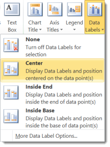 Add or remove data labels in a chart - support.microsoft.com On the Design tab, in the Chart Layouts group, click Add Chart Element, choose Data Labels, and then click None. Click a data label one time to select all data labels in a data series or two times to select just one data label that you want to delete, and then press DELETE. Right-click a data label, and then click Delete.