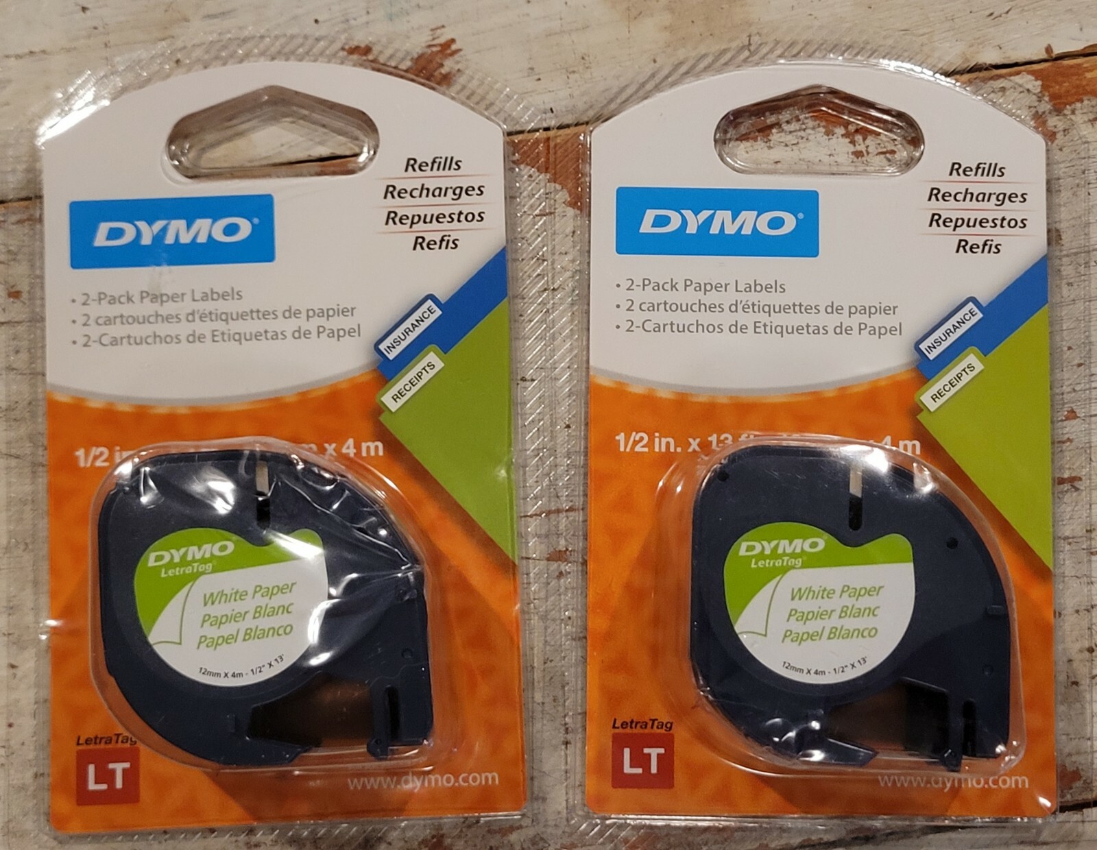 DYMO 91330 LetraTag 1/2" x 13' White Paper Label Tape - WebstaurantStore DYMO 10697 LetraTag 1/2" x 13' White Paper Label Tape - 2/Pack $5.79 /Pack plus DYMO 18771 LetraTag 1/2" x 6 1/2' White Iron-On Fabric Label Tape $6.89 /Each DYMO 91338 LetraTag 1/2" x 13' Silver Metallic Plastic Label Tape $6.59 /Each DYMO 12331 LetraTag 1/2" x 13' 3-Pack Assorted Paper and Plastic Label Tape $13.99 /Pack
