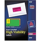 Avery Neon Shipping Labels for Laser Printers, Assorted: Green, Pink, Yellow Labels, 15 Neon Labels (5975)