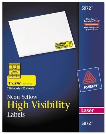 Avery High Visibility Laser Shipping Labels, 2" x 4", Assorted Colors ... Avery High Visibility Laser Address Labels, 1" x 2-5/8", Neon Green, 750 Labels Per Pack (5971) $34.99. Box. This item ships FREE * Qty Add to Cart. 3 (1) Avery High Visibility Laser Shipping Labels, 2" x 4", Neon Green, 1000 Labels Per Pack (5976) $103.99. Box. This item ships FREE *
